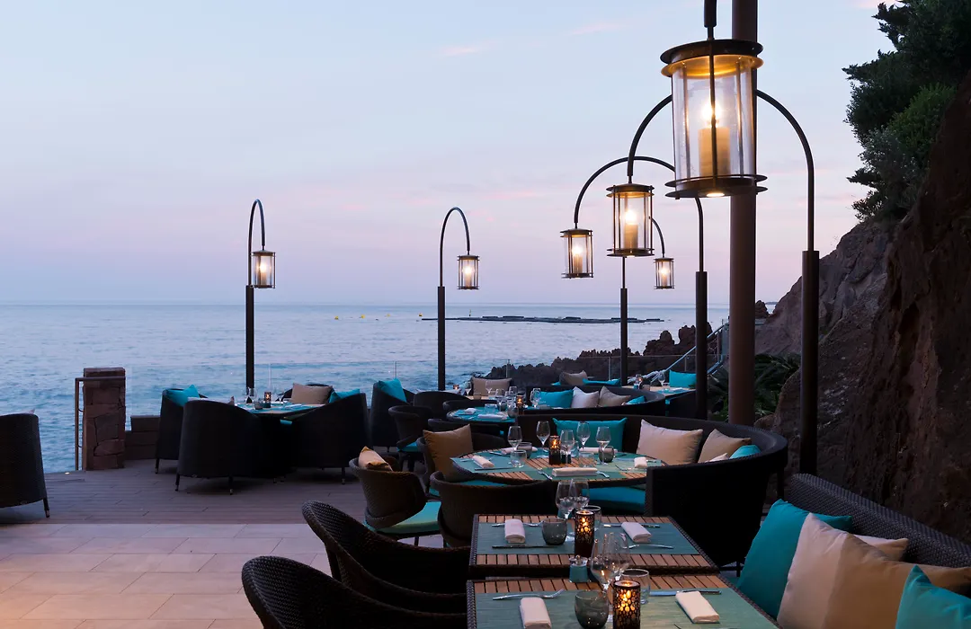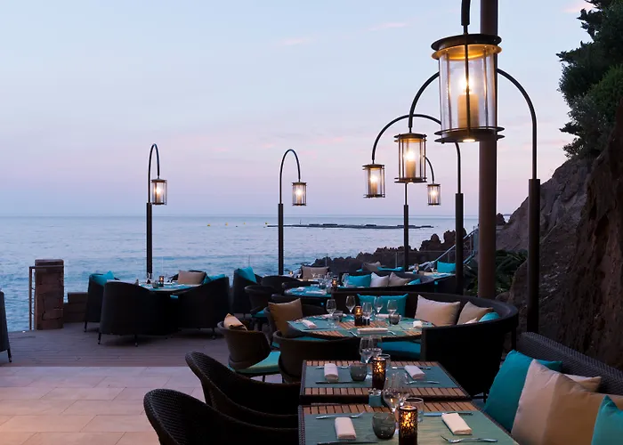 Dining options include the Michelin-starred restaurant L'Or Bleu, where creative Mediterranean dishes are served against a scenic backdrop. The MoYa Beach Club offers a relaxed atmosphere with a focus on local Mediterranean cuisine.