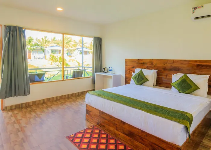 Treebo Lands End Beach Resort Morjim, a 3-star property with an 8.1/10 rating on Booking.com, offers beach access and modern amenities. Guests can enjoy a complimentary breakfast and a bar on-site.