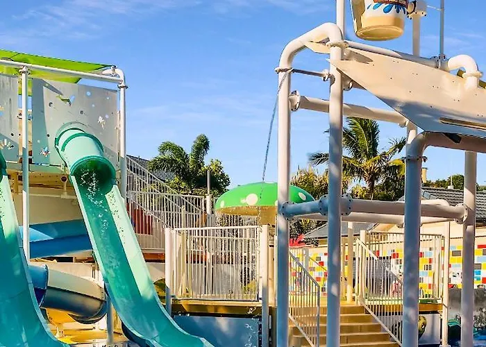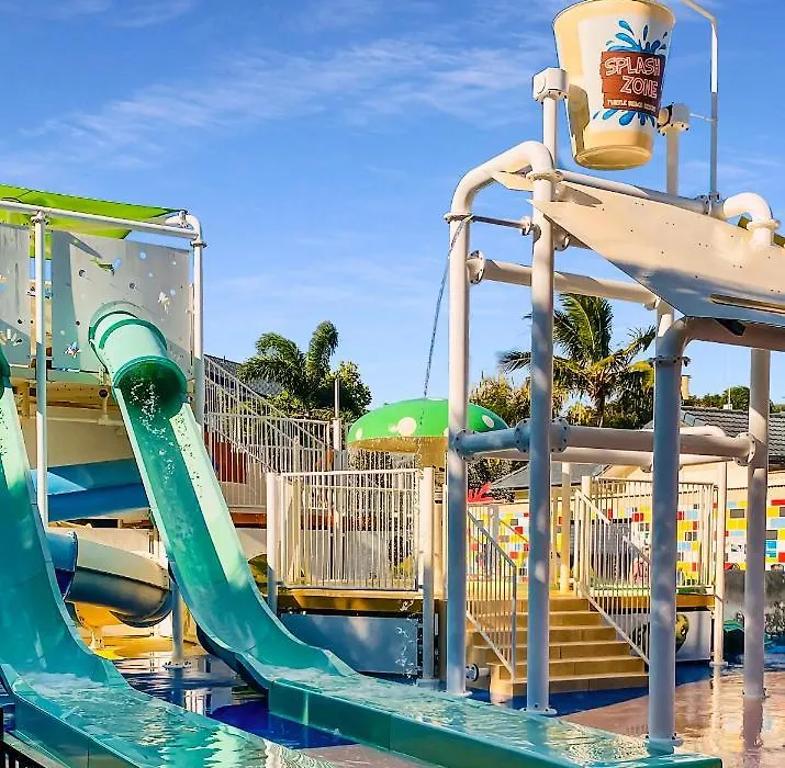 Turtle Beach Resort offers family-friendly 5-star accommodations with a 7.9/10 Booking.com rating. Key amenities include a water park, multiple swimming areas, and an on-site restaurant. Located 300 meters from Mermaid Beach, this resort provides self-contained apartments ideal for families.