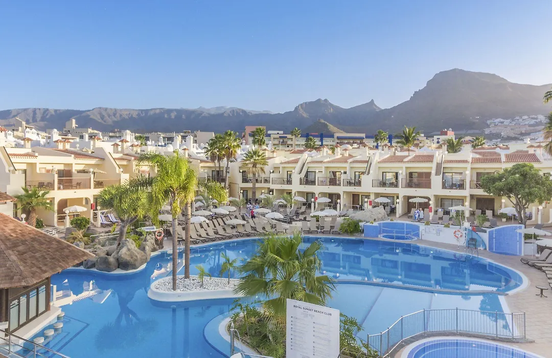 Royal Sunset Beach Club features spacious, air-conditioned apartments and a communal sun terrace with a free-form pool, catering to families and couples. This 4-star Costa Adeje (Tenerife) hotel includes on-site dining options, a gym, and recreational facilities.