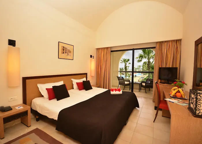 Sentido Djerba Beach, a 4-star Triffa hotel, features Arad-Andalusian architecture and is surrounded by fine sand beaches and turquoise Mediterranean waters. The hotel offers 246 air-conditioned rooms, multiple dining options, and leisure amenities including a swimming pool and wellness facilities.