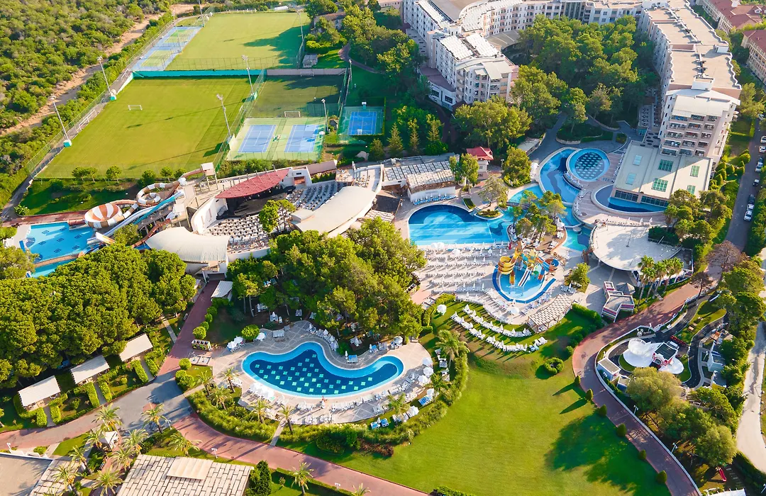 The hotel complex is just 2 km from Side, providing access to historical landmarks such as the Greek Amphitheater and Apollo's Temple. Transportation options include local dolmus buses, with stops accessible on foot.