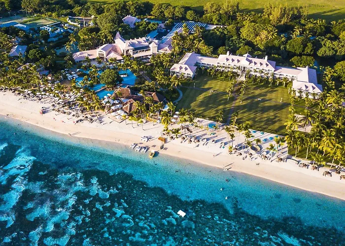 Exquisite Sugar Beach Mauritius offers a luxurious beachfront experience with an extensive array of amenities, including multiple swimming pools and 14 dining options. This family-friendly 5-star hotel is rated 8.8/10 on Booking.com and features direct beach access complemented by lush, manicured gardens.