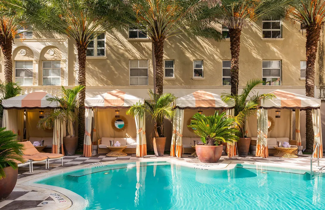 Leisure facilities include a tropical-themed courtyard pool recently ranked among the top 15 most jaw-dropping pools in Miami. Guests can participate in beach yoga classes or relax at the private beach area with complimentary golf cart service.