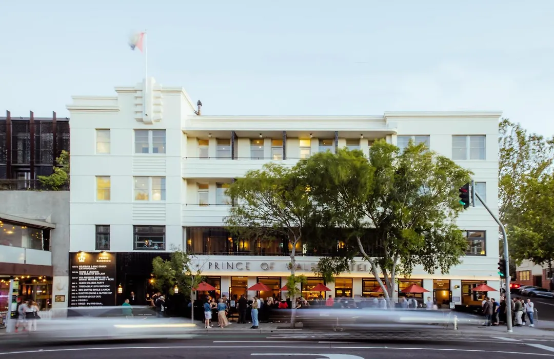 Dining options include the Prince Dining Room with a menu designed by Head Chef Dan Cooper, offering seasonal dishes, and The Prince Deck, which features a timber terrace. The Prince Public Bar serves as a popular local watering hole.