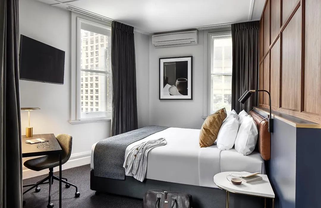 Veriu Central offers a 5-star experience in a historic late 19th-century building with modern amenities. This central Sydney hotel features an on-site café and bar, Central Dining with five eateries, and a fitness centre. It is also pet-friendly and allows long stays with reduced rates.