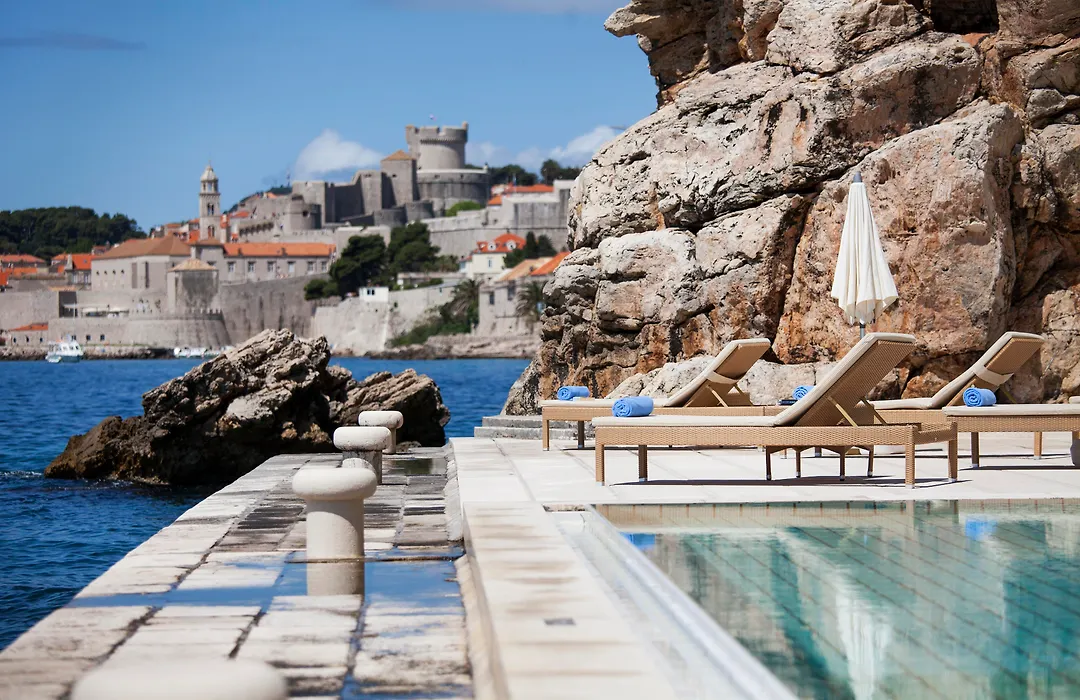 Villa Glavic, a 5-star luxury Dubrovnik hotel with a 9.0/10 booking rating, features a private beach and outdoor saltwater swimming pool. Guests enjoy free access to wellness facilities just 10 meters away at Grand Villa Argentina.
