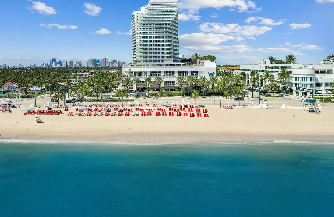 W Fort Lauderdale, a 4-star hotel rated 7.8/10 on Booking.com, features direct beach access with a range of luxurious amenities, including an outdoor swimming pool and a full-service spa. Unique architectural elements like a jellyfish aquarium enhance the coastal vibe. Notable for its vibrant dining options, the hotel showcases award-winning restaurants.