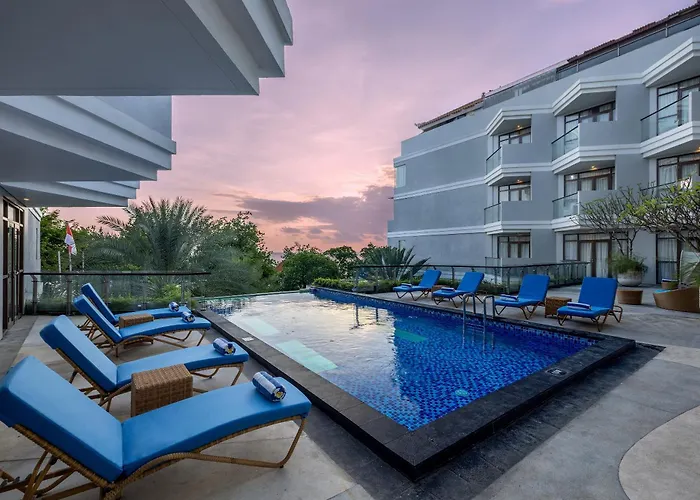 Wyndham Garden Kuta Beach Bali offers a prime location directly across from Kuta Beach, featuring 4-star accommodations. This modern hotel includes two outdoor pools and a rooftop spa with ocean views, ideal for leisure travelers.