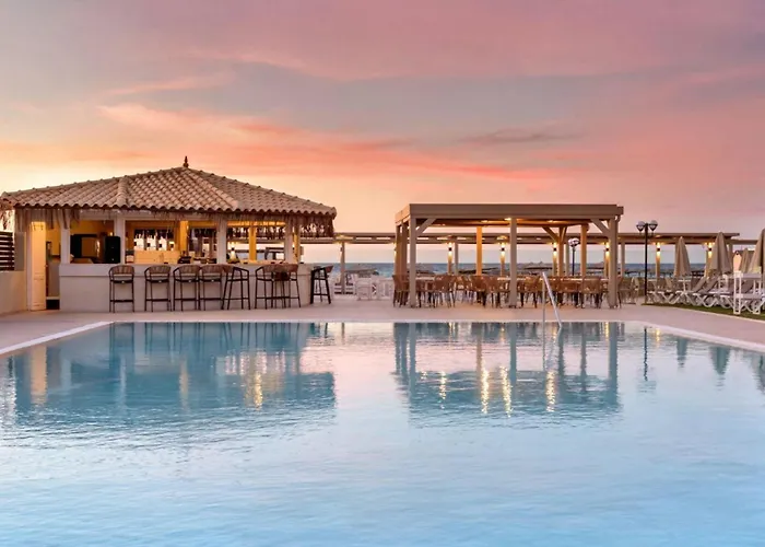 Zeus Hotels Neptuno Beach, a 4-star all-inclusive hotel, is directly situated on the long sandy beach of Ammoudara, featuring 135 rooms tailored for couples and families. The property offers a range of amenities, including a swimming pool, children's activities, and various dining options.